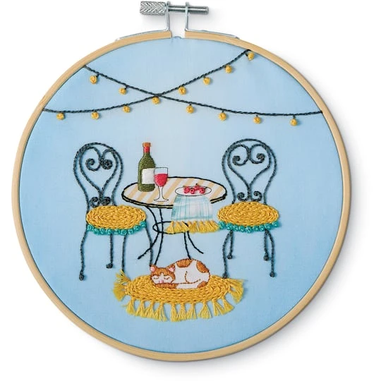 A variety of fun embroidery stitches that create texture and dimension are featured on this Italian kitchen scene. Simply accent the full-color fabric with stitching as shown on the chart included in the instructions. Use the included bamboo hoop for both stitching and finishing.