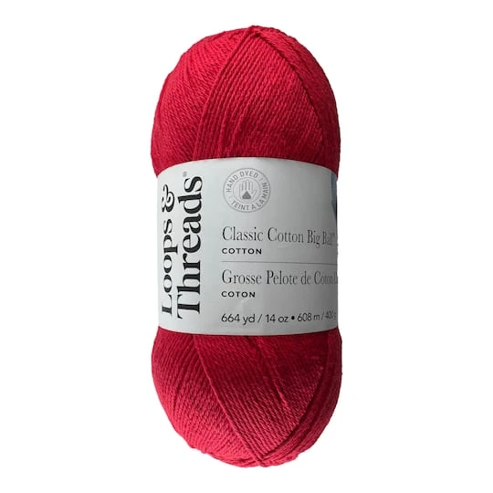The ultimate cotton yarn ideal for knit, crochet and craft projects is now available in a big ball size. With more than 600 yards, this classic worsted weight yarn is perfect for making potholder sets, granny square blankets, market bags, and other large fiber craft projects.
