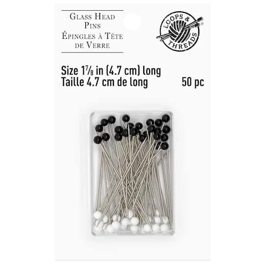 Secure multiple layers of fabric at once while quilting with the Glasshead Leader Pins Pack by Loops and Threads. These pins are easy to locate when pinned into the fabric and can withstand heat when ironed over. They are perfect for stitching and quilting projects.
