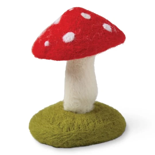 Make a cute wool mushroom with this needle felting kit from Loops & Threads. It features five different wool roving colors that you can use to build the finished project.