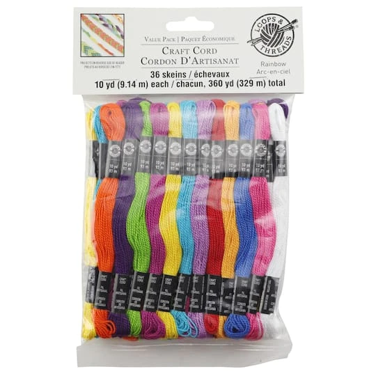 This assortment of rainbow colored craft cords are perfect for stitching, friendship bracelets, scrapbook and memory projects. This size 5 craft thread is made from Pima quality cotton that is gassed and mercerized providing a very distinct sheen, smoothness and easy usage. It’s ideal for friendship bracelets, necklaces headbands, craft projects and more.