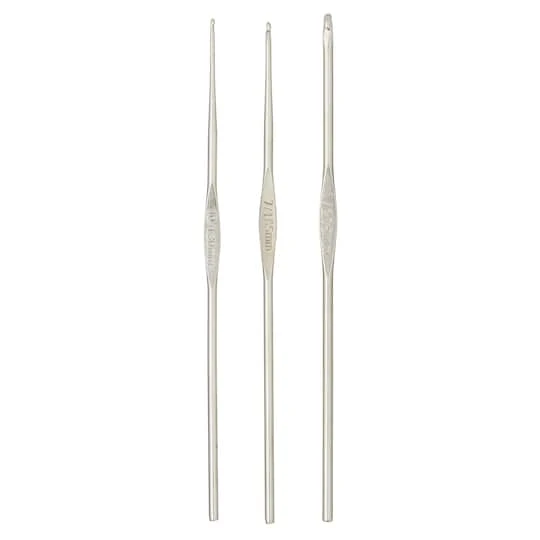Perfect for doilies, tablecloths and edgings, these steel hooks feature a tapered throat and rounded tip. The precision-crafted quality assures a fine finish.